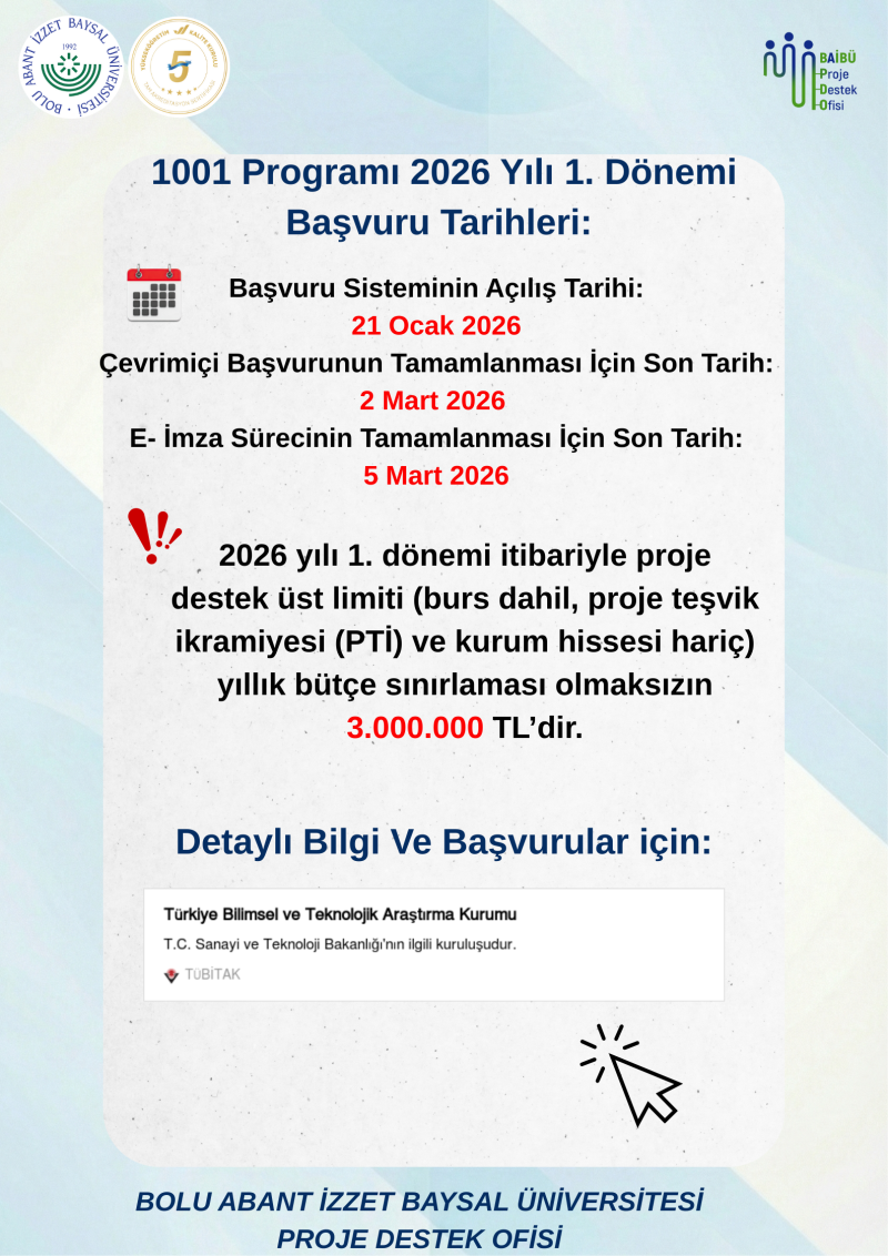 1001 Programı 2026 Yılı 1. Dönemi Başvuru Tarihleri: