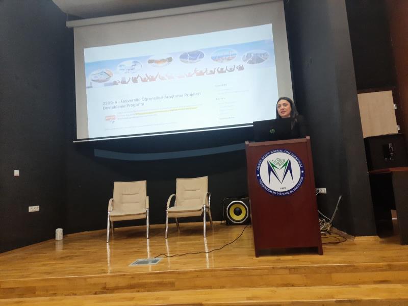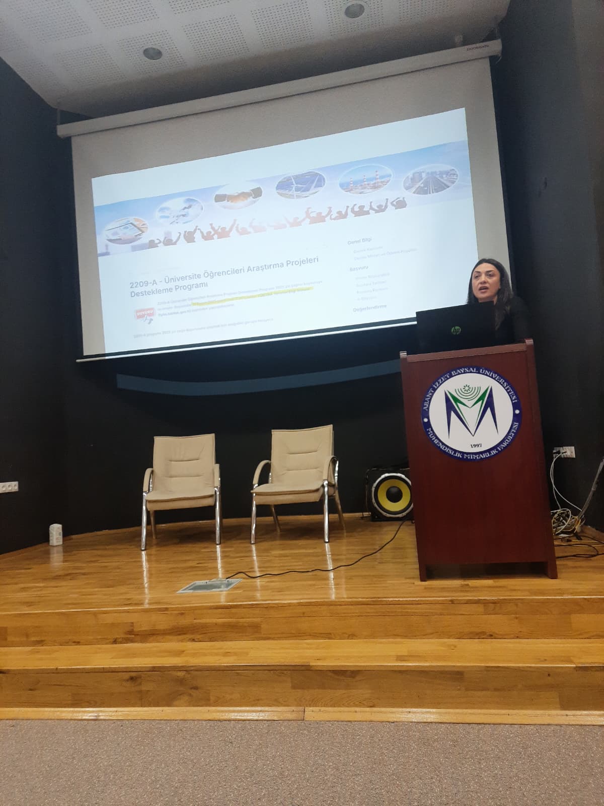 22 Ekim 2025 tarihinde Mühendislik Fakültesi Konferans Salonu’nda gerçekleştirilen TÜBİTAK 2209-A/B Üniversite Öğrencileri Araştırma Projeleri ve ÜNİDES Projesi Tanıtım ve Bilgilendirme Serisi-4 etkinliği, öğrencilerimizin yoğun ilgisiyle tamamlandı.