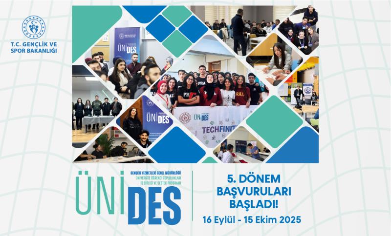 2025-2026 döneminde ÜNİDES iki dönem halinde gerçekleştirilecek. 5. dönem başvuruları 16 Eylül – 15 Ekim 2025 tarihleri arasında, e-genc.gsb.gov.tr adresi üzerinden çevrimiçi olarak alınacak.
