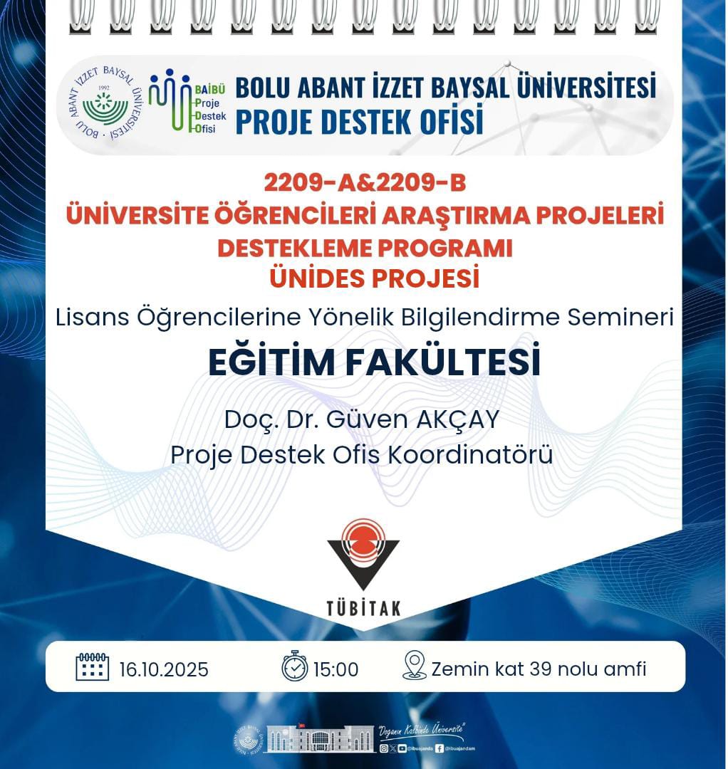Bu Seminer de TÜBİTAK ve ÜNİDES Projeleri başvuru süreçleri, proje yazımı, proje bütçesi, topluluk başkanı ile danışmanın görev ve sorumlulukları hakkında bilgilendirme yapılacaktır.