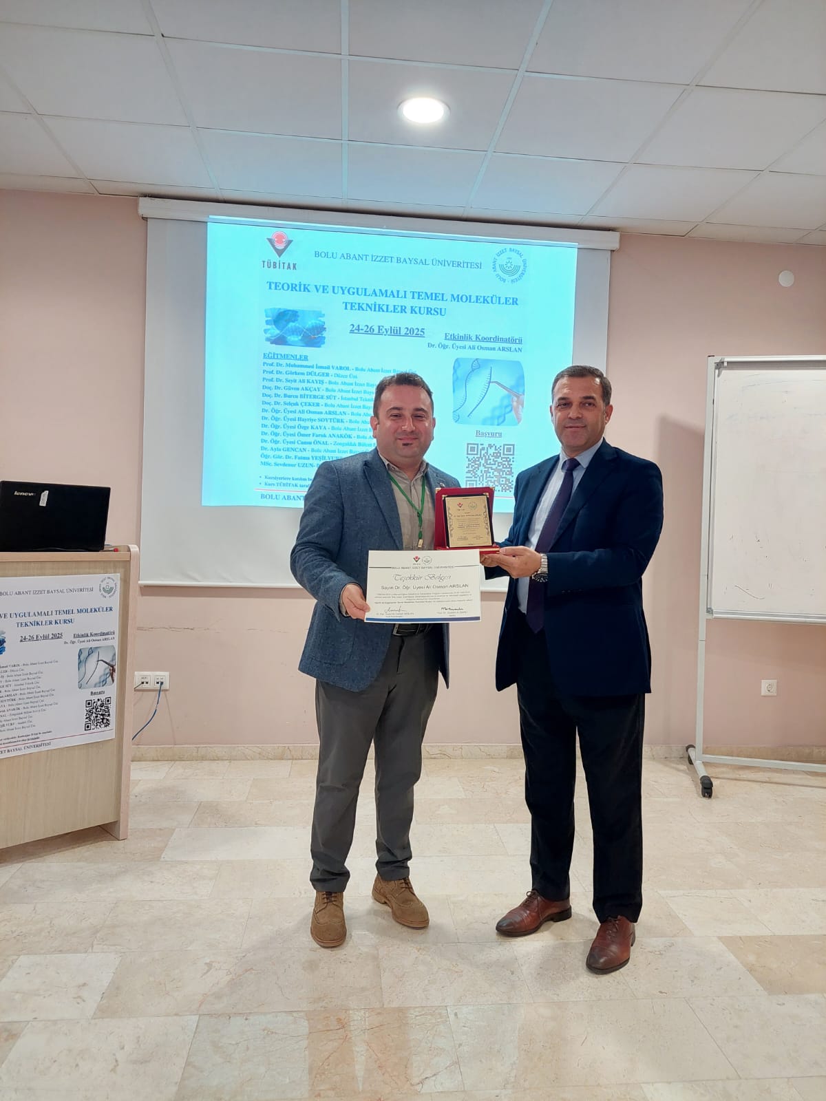 TÜBİTAK 2237-A Bilimsel Eğitim Etkinliklerini Destekleme Programı" tarafından desteklenen "Teorik ve Uygulamalı Moleküler Teknikler Kursu" Dr. Öğr. Üyesi Ali Osman ARSLAN koordinatörlüğünde 24-26 Eylül 2025 tarihleri arasında Bolu Abant İzzet Baysal Üniversitesi’nde düzenlendi.